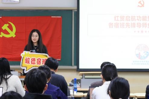 红贸启航功能型党支部各宿班先锋导师负责人依次作阶段性工作汇报。各宿班先锋导师通过线上线下多形式交流实现新生帮扶的积极成效,同时针对现存问题提出精准对接需求、创新活动载体、加强联动协作等改进计划。