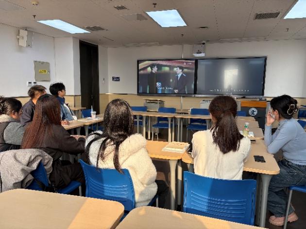 两支部组织全体党员集中观看学习《“十五五” 时期经济社会发展的指导思想、重大原则和根本保证》《“十五五” 时期经济社会发展的重大战略任务》专题内容。全体党员结合国贸专业特色,深入领会 “十五五” 规划发展核心要求、战略方向及重点任务,深刻认识青年党员的时代责任,明晰专业所学与国家发展需求结合的实践方向。