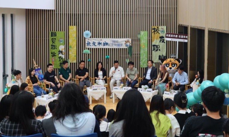 随后在各位校友与嘉宾围绕“从敲门砖到引航舵——职场通关与人生修炼”的主题展开了交流,李壮先生针对当下毕业生的求职困惑,通过分享自己的求职经历,强调了“专注”的重要性,他介绍了自己在“金融+科技”领域深耕细作的故事,鼓励在校生把握时代动态、探寻发展机遇。杨灿秋校友深情回顾了在校时光,他以自身从基层到管理岗的职业发展经历,强调 “保持学习能力是应对职场挑战的关键”,希望青年学子们在实践中打磨素养、积累认知。卢昭明校友在分享中展现了国贸学子多元化的职业发展路径,他认为,面对快速更迭的就业环境,需以开放心态勇闯不同领域,在实践中积淀经验、锤炼能力。许旖珊校友深耕国内证券研究行业,她围绕自己从在校时期到职场发展的经历,深入剖析了锚定职业目标对于她成长过程中的重要性,她以独特视角诠释国贸人的守正创新精神。李传仁校友分享了从中财本科到深造再到求职的故事,呼吁毕业生逐步发现和锻炼自己的能力,以实干促发展,善于在瞬息万变的工作环境中把握住机遇,以过硬的专业知识和优秀的工作能力,争取宝贵机会。高仁尚校友分享了个人求学经历与职业感悟,他讲到,面对业务转型挑战,唯有持续学习方能精进,他对国贸学院校友会搭建的交流平台表示感谢,并表示今后也将继续助力学院,为提升在校生就业核心竞争力贡献自身力量。李佳琪校友深入浅出地剖析了蓬勃发展的大数据产品行业,她强调,主动沟通是学习的捷径,数据分析能力是互联网行业的核心驱动力,建议同学们在专业学习中,既要夯实数据工具应用与逻辑分析的基础能力,又要培养跨场景沟通和协作能力。龚艺校友结合在互联网公司的工作经历,强调要利用实习实践、校友交流等机会,提前了解职业生态与核心胜任力,将市场分析实践与思维有机结合,紧盯市场的风向标。余纪磊校友从个人在互联网公司产品研发量化岗位的工作经历中提炼感悟,他认为,初入职场的毕业生完成从 “任务式思维” 到 “探索式思维” 的转变尤为重要。