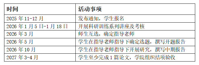 请有意报名的同学于2025年12月2日15点前填写在线报名表:【腾讯文档】第九届本科学术人才培养项目报名登记表https://docs.qq.com/form/page/DYUJMdUJCS1hxaVJT。逾期不能补报,报名成功的同学须在第19-20周参加学习和考试,如无特殊情况不得随意退出。