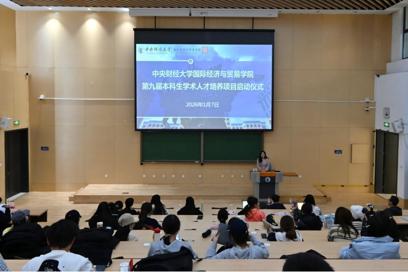 2026年1月7日下午,国际经济与贸易学院第九届本科生学术人才培养项目启动仪式在沙河校区学院楼13号楼125教室举行,国际经济与贸易学院副院长李瑞琴出席仪式并致辞,项目指导教师符大海、教学科研管理办公室相关老师以及全体学员参加启动仪式。
