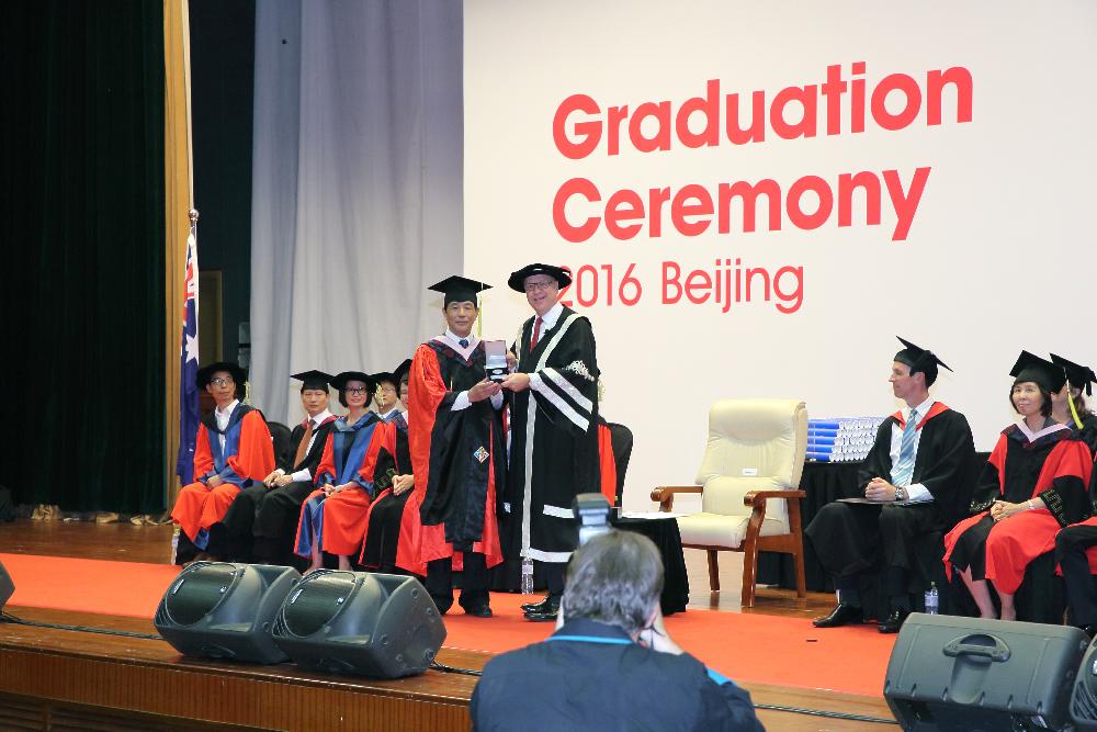 2016年7月3日,我校中澳合作国际经济与贸易专业(国际贸易/金融风险管理)本科教育项目2016届毕业生参加了由澳大利亚维多利亚大学在学术会堂206举办的毕业典礼暨学位授予仪式。维多利亚大学校长Peter Dawkins先生、副校长Steve Berridge先生,中央财经大学校长王广谦教授、国际经济与贸易学院院长唐宜红教授、党总支书记贺培教授、副院长刘春生副教授以及参与该项目教学与管理的多位两校教师、毕业生亲友等参加了典礼,并向毕业生表示热烈祝贺。