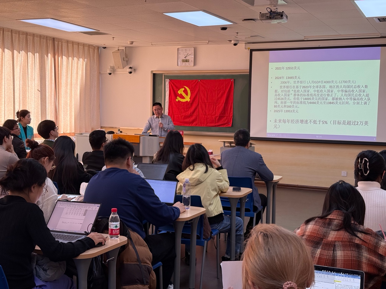 国际贸易系教工党支部书记梅冬州教授以2026年全国两会精神为指引,围绕树立和践行正确政绩观学习教育要求,结合国际贸易学科特色讲授专题党课。梅老师立足 “十五五” 开局之年宏观背景,系统解读 2026 年经济增长目标的科学内涵与政策逻辑,深入阐释当前经济形势判断与宏观政策考量,精准传达全国两会关于扩大高水平对外开放、稳步推进制度型开放的重要部署,并勉励全体师生党员把宏观政策导向与专业研究、教学实践紧密结合,立足岗位担当作为,以扎实学识与过硬本领服务国家高水平对外开放大局,切实把学习成效转化为推动学科发展、服务强国建设的实际行动。