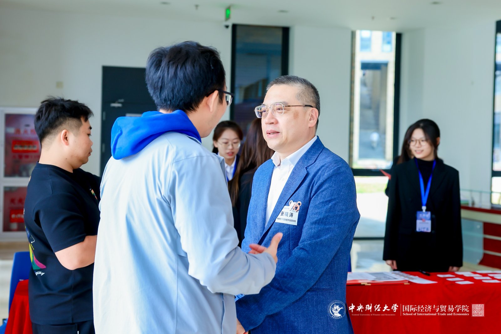 10月18日下午,“开放风来满眼春,国贸学子重相逢”2025年国际经济与贸易学院校友返校系列活动于中央财经大学沙河校区学院13号楼顺利举办。国际经济与贸易学院院长张晓涛,党委书记徐淼,2010级校友、北京林业大学经济管理学院国际贸易系教工党支部书记李芳芳,学院教师代表及全体返校校友共同出席本次活动。学院领导老师与校友们欢聚一堂,交流思想、共绘蓝图。