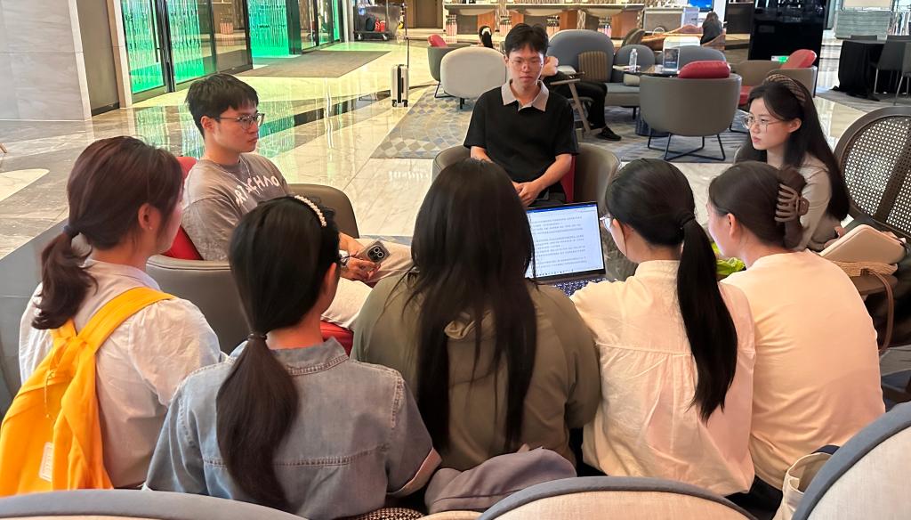 实习实践团同学们正在进行经验分享