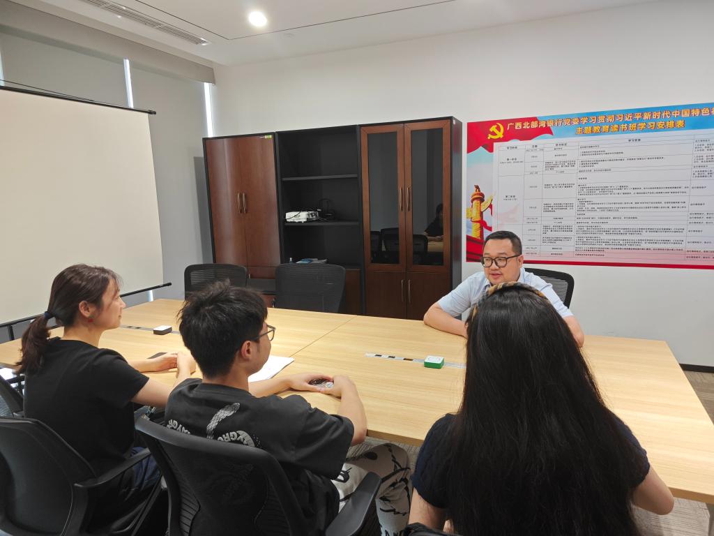 实习实践团学子在广西北部湾银行总部的实习告一段落。第三周起,同学们将前往银行业务一线——分支机构开展学习和工作。在分支机构,实习实践团将有机会接触一线业务,跟随银行前辈走访企业,进行学习交流。