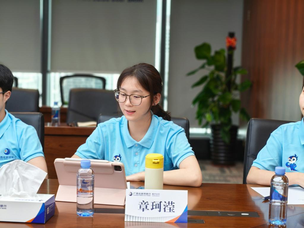 在广西北部湾银行总行,我通过学习跨境业务管理知识与供应链金融方案,了解银行产品研发流程,构建起对银行业务的理论框架。进入分行与支行后,从信贷报告撰写、房开贷流程实操,到观察原材料自动加工、破碎筛分机器智能制造,我直观感受到银行资金如何精准注入实体经济,助力企业提质增效。这种从顶层设计到基层落地的完整链条学习,让我对银行服务实体经济的路径有了系统认知。