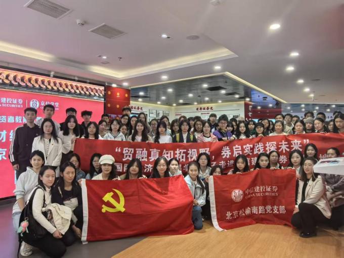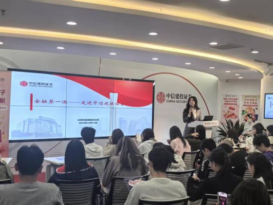 为进一步贯彻落实习近平总书记关于青年工作的重要思想,拓展青年学生视野,深入提升学生职业素养与规划能力,助力同学们做好职业选择和规划路径,深入了解券商行业发展动态和企业人才需求,10月15日下午,国际经济与贸易学院国际商务和贸易经济本科生党支部联合学院职业发展中心组织100位本科生和研究生参访国家级证券期货投资者教育基地——中信建投证券投教基地。本次活动由学院国际商务和贸易经济本科生党支部书记、学院就业专员施立萍老师带队,百名学生怀着对证券行业的浓厚兴趣与探索热情积极参与其中。中信建投证券北京松榆南路营业部副总经理王璐、中信建投证券北京松榆南路营业部人力负责人王蕾及中信建投证券北京松榆南路党支部组织委员常琳出席本次活动。