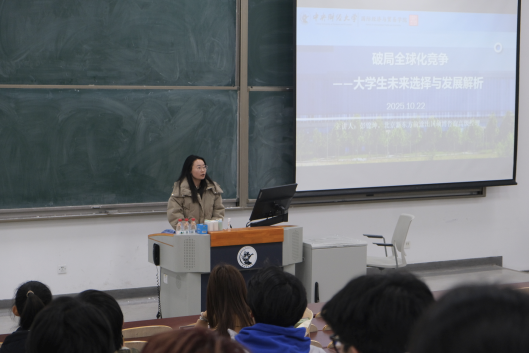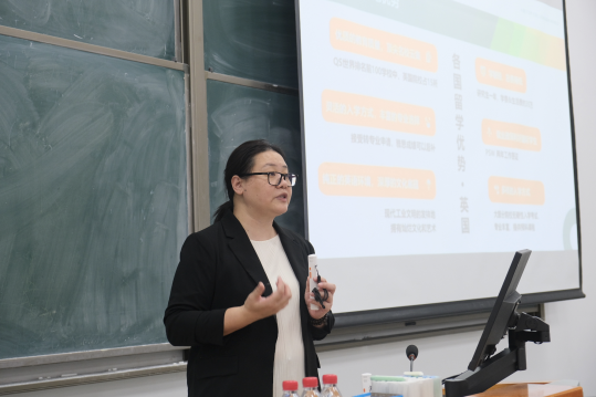 为助力同学们在全球化竞争浪潮中找准未来方向,明晰学业与职业发展路径,助力同学们做好留学规划,10月22日下午,学院职业发展中心在沙河校区主教215教室举办了“破局全球化竞争—大学生未来选择与发展解析”专题讲座。此次讲座由北京新东方前途出国硕博咨询高级经理彭锦坤老师主讲,学院就业专员施立萍老师主持,大一大二年级学生到场聆听。